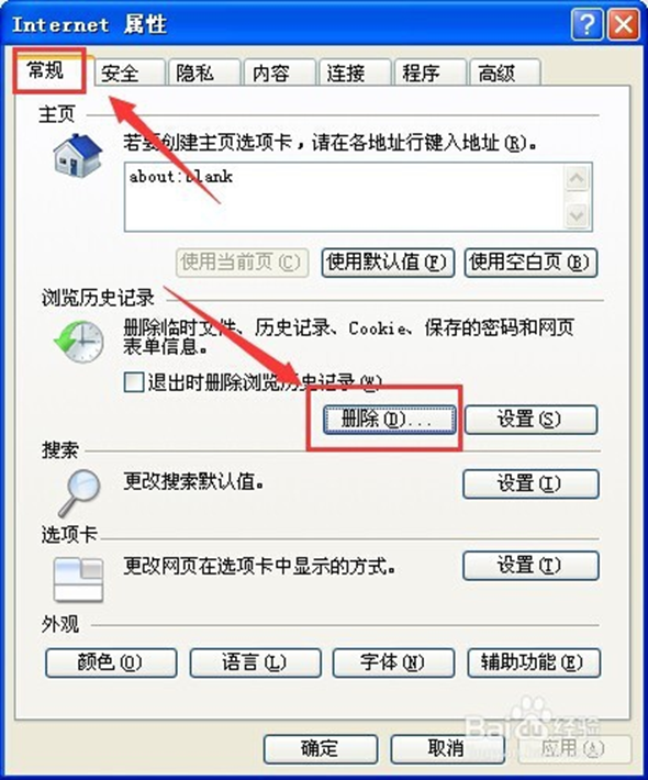 在控制面板点击Internet选项,弹出Internet属性对话框。